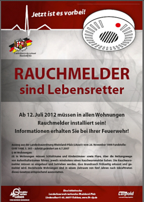 In ganz Rheinland-Pfalz ist bis zum 12. Juli 2012 die Installation von Rauchwarnmeldern in jeder Wohnung, auch in Altbauten, Plicht. Das hat zu großem Informationsbedarf geführt. Wo im Haus müssen Rauchwarnmelder befestigt werden? Wie funktionieren sie überhaupt? – nur einige der zahlreichen Frage, die Feuerwehren, Unternehmen und Behörden in der letzten Zeit erreichen.