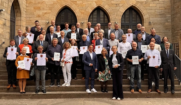 Staatssekretärin Schneider zeichnete in Vertretung für Innenminister Michael Ebling die acht KuLaDig-RLP-Modellkommunen des Projektjahres 2024 aus (Sinzig / Bad Neuenahr-Ahrweiler, Bacharach, Bundenbach, Herxheim, Mutterstadt, Oberkail, Römerberg und Ruwer) sowie die vier durch das KuLaDig-Kompetenzzentrum unterstützten Kommunen Billigheim-Ingenheim, Großfischlingen, Niederschlettenbach und Welschneudorf.