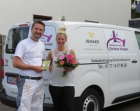 „Simply clean“ ist die Prämisse, wo immer Christine Wandel und Ihr Team zum Einsatz kommen. Die Jemako-Vertriebspartnerin arbeitet sowohl im privaten als auch im gewerblichen Bereich. Dabei werden Grund- und Bauabschlussreinigungen für Bauherren ebenso gewissenhaft erledigt wie Unterhaltsreinigungen in Praxen, Büros oder Privathaushalten. Fenster, Bodenbeläge und andere Oberflächen werden im Handumdrehen gereinigt und gepflegt. „Dabei setzen wir auf die Kraft unserer Profi-Produkte, die je nach Einsatzort und Oberfläche stets gezielt ausgewählt und angewendet werden“, verspricht die Hygiene-Expertin.