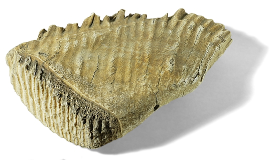 Den Backenzahn eines Wollhaarmammuts können Sie in der Ausstellung zur Archäologie an Rhein und Ahr im HeimatMuseum Schloss Sinzig entdecken. Der lamellenartig aufgebaute Zahn hat auch eine Besonderheit: Beim Zerkauen der Nahrung nutzten sich die großen Zähne des Mammuts zwar ab, schoben sich daraufhin jedoch ein Stück nach. Das Mammut hatte wohl selten Zahnprobleme.